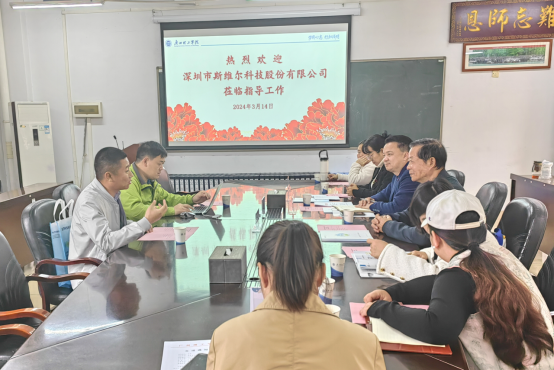 在友好而活跃的座谈会上,吴院长对斯维尔公司罗总与徐总的来访表示热烈欢迎,并简要介绍了学校的发展概况、学院的人才培养、师资力量、专业建设、招生就业、工作室等情况。