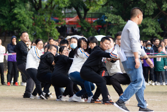 教职工拔河比赛中,讲台上的他们是诲人不倦的老师,讲台下的他们也有着不一样的风貌。教职工们在拔河比赛中拼尽全力,表现得十分积极,展示出我院蓬勃向上、永不言弃的精神。
