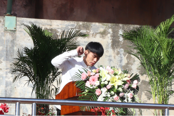 运动员代表邹荣兴同学宣誓将严格遵守比赛规则,坚决服从裁判。遵循友谊第一,比赛第二的原则,重在参与,尊重对手,争做文明运动员。发扬勇敢、顽强、拼搏的精神,赛出风格,赛出水平。