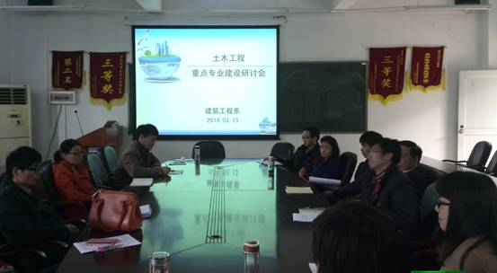为保证土木工程专业重点专业的顺利建设,我系于2014年3月13日下午3:00钟进行了土木工程重点专业建设研讨会,系常务副主任伏焕昌、系主任王从祥、侯庆华、土木教研室全体教师出席了本次会议。