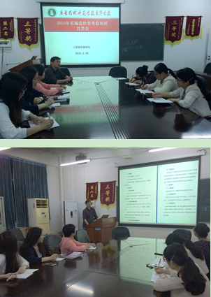 3月31日,造价教研室在9栋教学楼举行2015年省直造价员考试培训工作会议,造价教研室全体老师出席了会议。