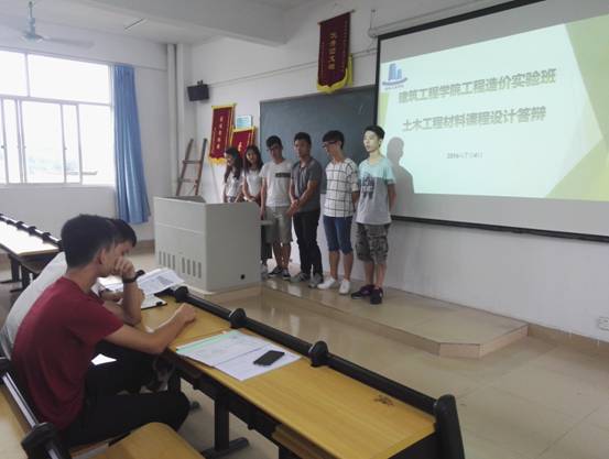 7月4日下午,我院为积极配合学校教育教学改革,在培养模式、课程设置和管理体制等方面进行创新。践行学校学分制改革,工程造价系实验班土木工程材料课程设计在9栋教学楼501课室进行课程设计答辩。答辩由白火云老师负责,整个答辩过程严谨融洽。