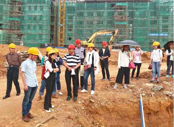 调研组受到广外增城实验学校项目建设项目负责人王智洪处长的热情接待。王智洪处长对项目的建设进度情况做了相应的介绍,我院教师就项目建设各分部工程的进度进行了探讨,以及了解项目建设后期的进度情况。