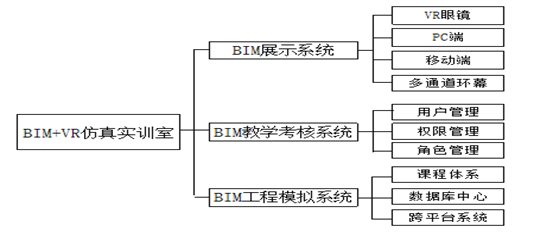 BIM+VR虚拟仿真实验室建设方案主要针对各建筑专业课程提供“BIM展示系统”、“BIM教学考核系统”、“BIM工程模拟系统”等三大模块,是一套支持跨屏以及多人协同式的解决方案。其中虚拟现实VR系统是指大型LED显示平台、人机交互光学追踪系统与专业的虚拟现实平台软件引擎、虚拟现实开发软件、虚拟现实课资源库平台、虛拟现实头盔等软硬件相结合,具备多人协同和人机交互操作的功能的解决方案,实验室与BIM行业相融合,实现了教、学、考、练,同时依托该中心可实现全校专业的覆盖,满足校级层面的资源共享和专业覆盖。