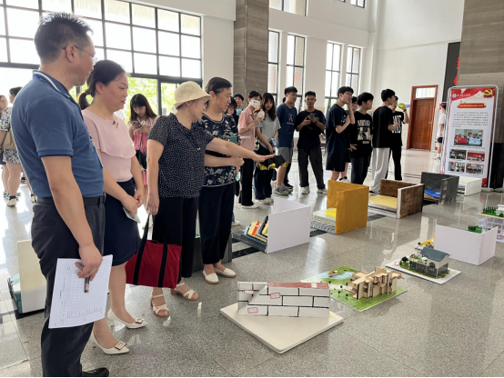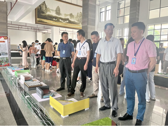 (周雨薇)6月17日,williamhill中国官网在行政楼一楼大厅举行专业实习模型展览和评分工作,教学管理部部长教务处处长陈英征、教学督导中心主任高虹亮、教务处副处长杨艳、督导秦红、实验管理中心副主任高文财、williamhill中国官网院长吴炎海和书记阴凡等领导莅临指导,学生们也在现场就模型作品与老师们展开了热烈的交流讨论。