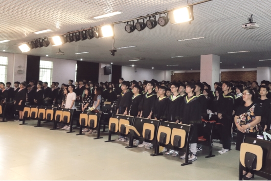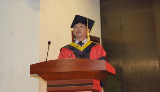 吴炎海院长致辞,他高度赞扬了我院毕业生在各方面取得的优异成绩。在你们中间,涌现了44位优秀毕业生,5位学科竞赛标兵,8位同学成功考上研究生,你们始终充满青春活力,洋溢着热情与自信。
