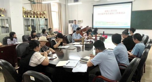 (郑佳)为全面做好毕业生就业工作,及时总结相关工作经验,加强经验交流。建工学院于5月9日开展了第11周“2024届毕业生就业工作推进会”。我院全体教职工参加会议。阴凡书记主持会议。