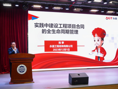 大会第三项,永道工程咨询有限公司项目管理部负责人陈攀经理带来精彩讲座——实践中建设工程项目合同的全生命周期管理。陈经理作为国家注册一级建造师有着10年大型房地产项目管理经验,他从合同风险控制、索赔技巧、合同预付款等多方面对项目合同的全生命周期管理进行了详细生动的经验分享。