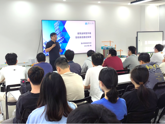 “墨点狗”公司总经理赵祺对我校师生的到来表示热烈的欢迎,并详细讲解了“墨点狗”公司的发展历程、行业背景、主营业务、国家政策,标杆性项目建设成果以及建筑工程装配式的案例应用分析。对建筑业转型升级智能建造路径的探索进行分析。就装配式建筑的管理体系及建筑业的智能化转型路径进行了分享,对广东省装配式的评价标准进行分析解读,并向大家展示了“墨点狗”公司在建筑业全产业链数字化的实践成果 。