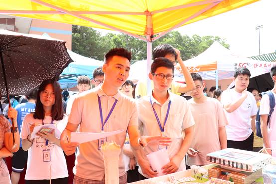 我院参选作品共有52个,其中课外学术研究23个,创意设计14个,创业比赛作品15个,模型制作想法新颖,外形设计独特多样化;学术研究多元,涵盖众多领域,创业比赛作品富有新意,上有创意新策划,下有便民小专利,可谓是百花齐放,百家争鸣。这展示了我院学子在科技创新、独立思考、实践动手三个方面上的潜力与积极性。在作品的展示环节中参展队伍们积极与现场观众交流心得,启发思维,并耐心为观众们解答疑问,彰显我院和谐、友爱的优良风气。