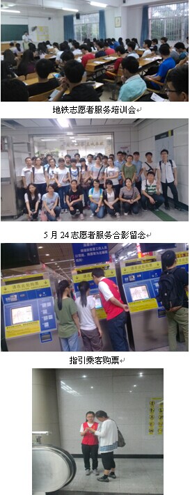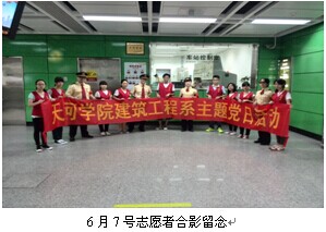地铁站内,出入口、站厅、站台、列车车厢、售票机、闸机……处处可见一抹抹“志愿的红色”,他们是我系广州地铁三号线志愿者。自2014年5月24日至6月14日,为期一个月的“主题党日”活动顺利开展。为了让同学们更好的锻炼自己,增强服务社会的意识,此次“主题党日”活动为地铁志愿者服务。一开始,我们从党支部和学生会内部出发,先试点进行志愿服务,了解清楚地铁站情况后,再组织我系班级同学参与服务活动,并在每次活动前对他们进行志愿服务培训,同学们整体参与活动积极性很高。我们曾经带队前往广州东地铁站从事志愿服务,我们也曾经带队去客村、天河客运站等地铁站从事志愿者服务。作为一名小小地铁志愿者,让同学们感受到了服务他人的快乐。