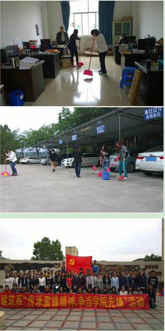 为了更好的学习雷锋的助人为乐的优良品质,弘扬雷锋无私奉献的精神,建筑工程系党总支开展的了以“传承雷锋精神,争当学院先锋”为主题的校园活动,3月24日下午,建筑系党总支组织教职工及学生党员和联络员对九栋办公楼、停车场及综合楼周围环境进行清洁活动,党群工作部副部长陈朝阳,建筑工程系党总书记李华东,副书记杨振宏等参加了本次活动并到现场指导工作。