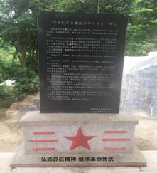 到了水泥道路大家满怀喜悦认为困难路段已经过去,阳光大道就在脚下,其实不然。到了X338县道,道路两侧大树极少,再者时间已是10点之后,烈日下的水泥路也是高温灼脚,更是难忍难耐,大家边走边喝水继续前行。路途中队员拜读了老红军彭显模的诗:《西江月.彭显模》之后,大家备受鼓舞,同时增加了坚持奋进的毅力,喝口凉水再前行。