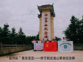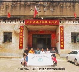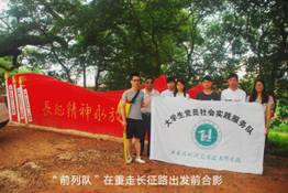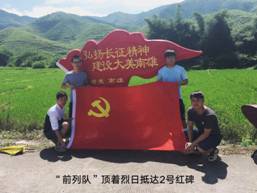 7月6日清晨,“前列队”全体成员做好了物资和精神准备,早早地来到两位将军的塑像前,6名学生党员以“红军不怕远征难”的精神开启了实践长征路的序幕。8:40六名党员以上朔村彭显伦将军塑像作为长征路起点向油山镇革命纪念碑为终点12公里的长征路践行之旅。