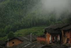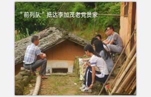 恰逢路面雨过境,一路山高坡陡,行走十分困难,真是“路隘林深苔滑”;带队的村委一直教我们如何走山路,“不要踩青苔,脚打横一点踩两边”。大家手中拿做物品,虽然走得小心翼翼,还是有几个队员摔了跤,陈老师为保护拍摄的相机不慎扭伤了右手,历经艰难我们终于到了老党员的家。在我们面前的这一位老党员穿着军装,个子很瘦小,但是神采奕奕,他一直以微笑招呼我们。看到了这位老党员身处困境,依然意志坚定,一股敬佩的感觉油然而生,虽然我们语言沟通较困难,但是能感受到他对我们的到来十分欣喜。