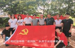六名党员跟随着红军长征路的指示牌向终点进发。当日骄阳似火,好像是要以高温天气来考验每个党员走长征路的决心和信心。六名队员头顶烈日,穿村走巷、跨沟越田,步履艰难地走过羊肠小道已是汗流浃背的来到了水泥大道。