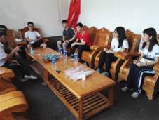 7月5日早上,全体队员来到油山镇上朔村,镇领导出门迎接全体队员,欢迎大学生暑假社会实践队员的到来。