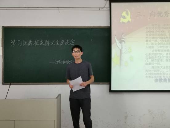 张威威同志给参会同志讲解优秀校友陈文金的事件