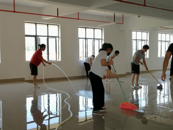 16点10分,在我院学生第二党支部成员的带领下,大家主动参与到本次活动,活动中大家不怕苦、不惧脏、不嫌累,对新教学楼七楼进行了一次集中大清扫。期间,各小组分工合作,有的用水管冲洗,有的用铁铲清除地上硬泥巴,剔除墙上污垢,也有用扫把清理,即使大家都大汗淋漓,但每一位脸上都洋溢着笑容,热情高涨,充分展现了党员同志吃苦耐劳的精神。实践是理论的源泉,参与清扫活动,是将理论转换为实践的一种表现,只有亲身体会打扫卫生的苦与累,才能深刻理解清洁人员的辛苦。泥土、灰尘给新教学楼的美观带来影响,但在大家汗水的浇灌下,新教学楼七楼焕然一新。苦中有乐,累中有甜,劳动创造了美。
