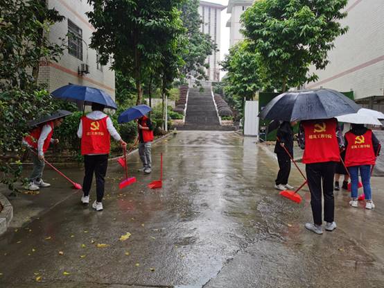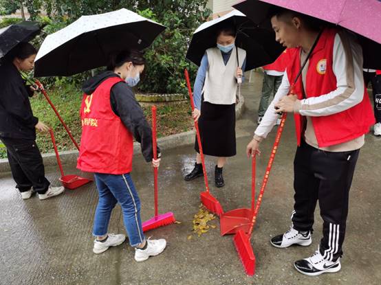 活动中,虽然下起了蒙蒙细雨,但学生党员迎难而上,以行动诠释党员吃苦耐劳、冲锋在前的奉献精神。由于下雨的原因,路面上的落叶格外难清扫,但这丝毫没有影响学生党员参加志愿清扫活动的热情。学生党员们相互配合,将走道上、花坛里、路面上都进行一一清扫,边边角角也不落下,将地面上掉落的树叶、垃圾、积水以及淤泥打扫干净。在活动最后,过道如雨后春笋般焕然一新。学生党员们以行动诠释初心,树立了坚韧的形象,在埋头苦干中体现出了不怕苦、不怕累的精神,给广大同学们起了示范带头作用。