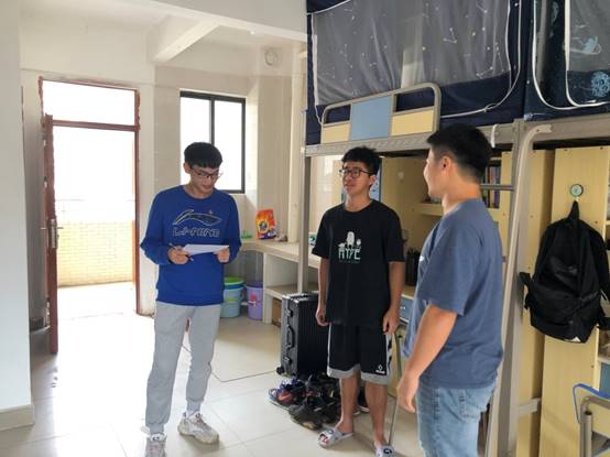 本次主题党日活动结合“党建引领,创标杆”党建文化进宿舍活动,组织学生党员结队联系一名入党积极分子,联系一个学生宿舍,郭涛书记带领各学生党员到达学生宿舍,按分配好的小组进行宿舍走访,宣传党史,让同学们更加了解党、亲近党。充分发挥学生党员和入党积极分子在宿舍的先锋模范作用,增强党与群众的联系,党员同志与学生进行密切交谈,了解他们在学习和生活上的情况,给他们提出合理的建议,解决一些实际问题。同时记录好此次访谈,以便后续跟进解决问题,在走访中发现和化解学生存在的各种隐患和矛盾,将大学生思想政治教育工作真正落到实处。最后,详细记录每个寝室的卫生情况并拍照记录。