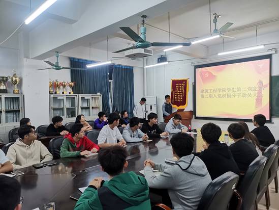 最后,学生第二党支部书记郭涛阐明了正确的入党动机,转变学生的入党思想观念,提高了入党积极分子对“党员”二字内涵的认知,并通过举何倩、梁波同志获奖的事例勉励每位同学不断提升自我、完善自我,并就关于做好《全国大学生党史知识竞答大会》云答题提出要求。