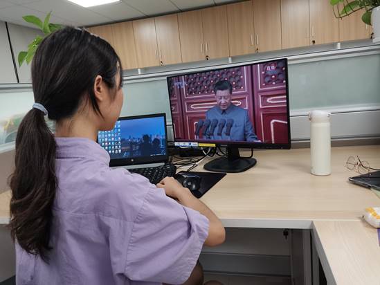 百年征程,波澜壮阔;百年初心,历久弥坚。我们实现了第一个百年奋斗目标,在中华大地上全面建成了小康社会,历史性地解决了绝对贫困问题,正在意气风发向着全面建成社会主义现代化强国的第二个百年奋斗目标迈进。广大青年学生党员备受鼓舞,纷纷表示要时不我待、只争朝夕,在党的正确领导下,朝着建国百年奋斗目标阔步前进!结束后,大家踊跃撰写了观后感,并深刻领悟学习了习近平总书记在建党100周年上的讲话精神;刘有良同志表示,在取得巨大成就的同时,我们要时刻保持清醒的头脑,继续应对新的任务新的挑战,奋勇前进,开启新的征程。