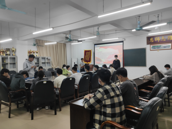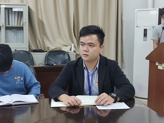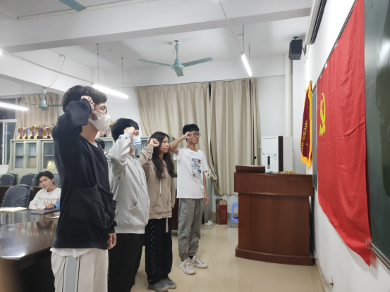 党支部书记郭涛老师恭喜4名同学加入中国共产党并成为了一名中共预备党员,希望大家努力刻苦学习、提高思想觉悟、严守组织纪律;希望在座的学生党员能够充分发挥先锋模范作用,积极参与党支部的工作,为身边同学做出实际贡献,并认真学习专业知识,为党和自身的理想不断进步和奋斗终生。