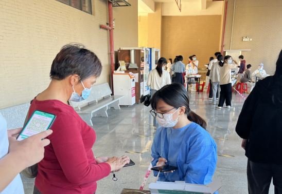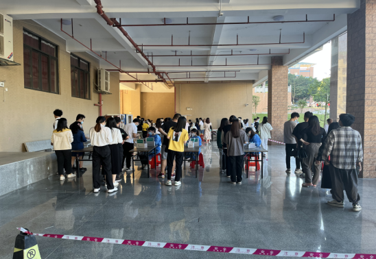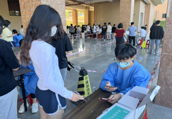 为提高核酸检测工作效率和维护校园安全秩序,同志们提前到达核酸检测现场接受业务培训,熟悉核酸检测现场运作流程,掌握岗位工作要领,明确岗位职责。在本次协助核酸检测志愿者活动中,同志们主要负责扫录粤核酸码。在活动过程中看似简单的查验扫码,却十分考验眼力,有些同学手持大规模采样的黑色二维码或是错选了自费的二维码,志愿者们必须认真核实,确保不出纰漏,否则环环相扣,会给后续的工作带来麻烦。同志们在工作中尽职尽责,一丝不苟,用责任和担当更好地筑牢校园战疫防线,守护全体师生健康安全。