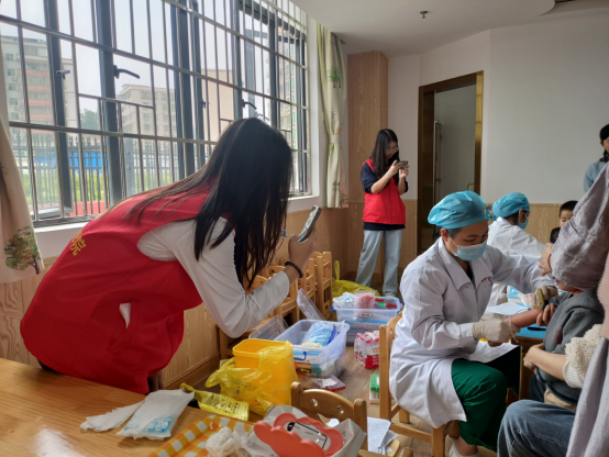 在此次志愿者活动中,同志们分为三组,分别负责在等候室协助老师们照顾小朋友、维持体检过程中的排队秩序、帮助老师拍摄小朋友们在体检过程中的照片。小朋友们的体检主要分为内科、抽血及眼保健三项,其中抽血是小朋友最害怕、最不配合的项目。为此志愿者们积极配合老师帮助小朋友们消除恐惧,及时检查小朋友们抽血后出血清况,对哭泣的小朋友进行安慰等。活动过程中,志愿者们秉承着认真负责的工作态度,无微不至的照顾小朋友们,确保了体检工作的有序进行。同时,志愿者们也受到了幼儿园老师们的一致好评。