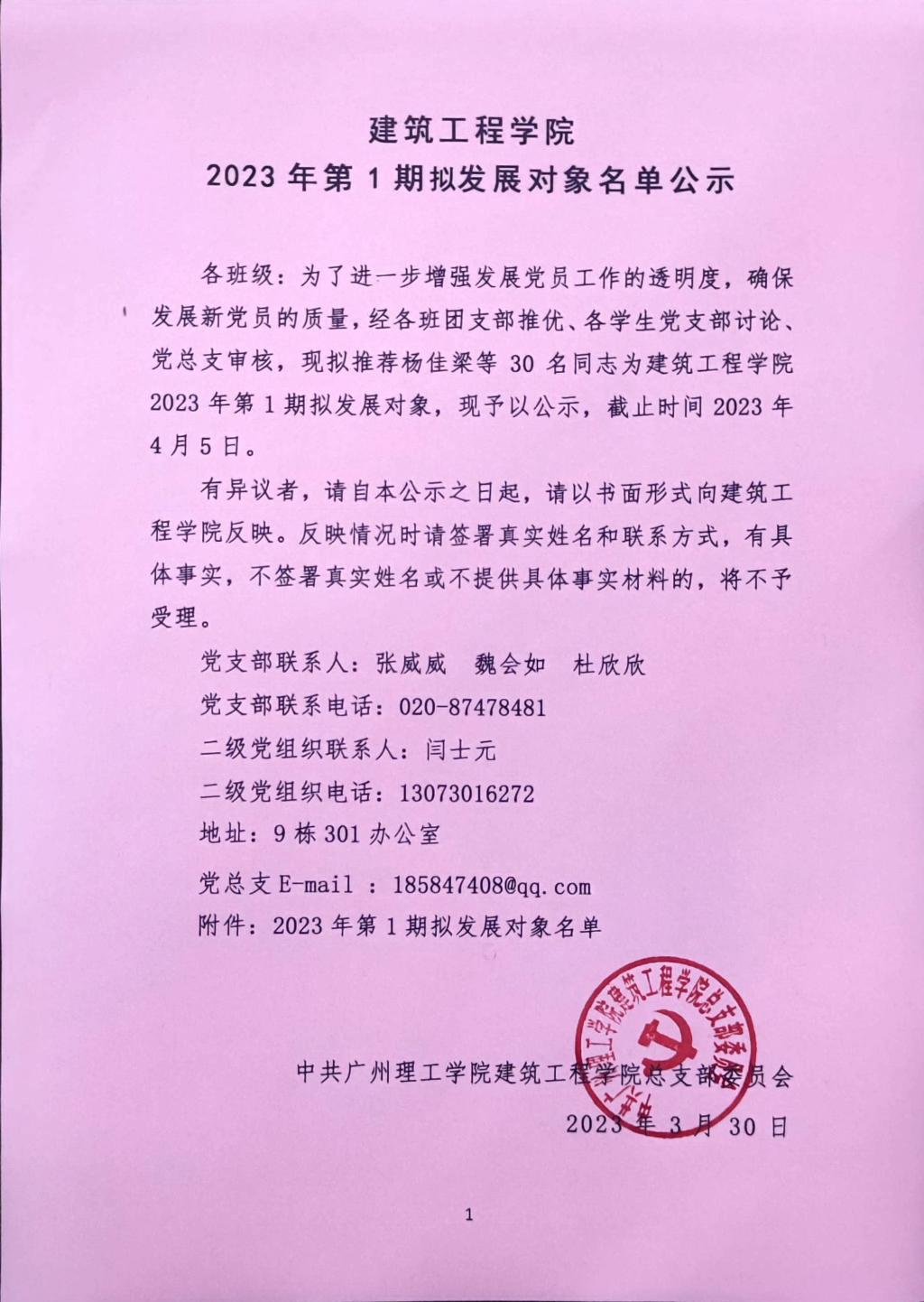williamhill中国官网2023年第1期拟发展对象名单公示