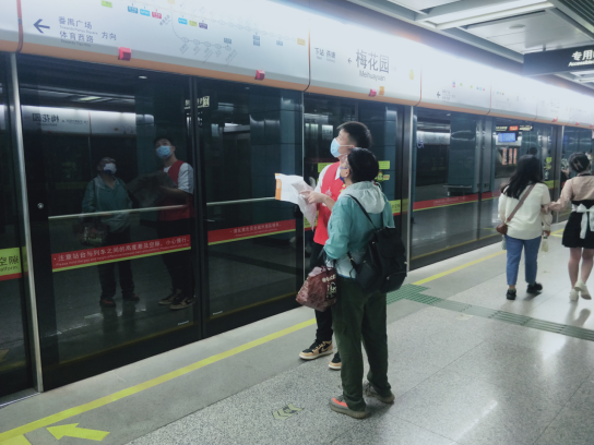 活动开始前,地铁值班站长组织开展了安全宣讲活动,并通过讲解志愿工作细则和注意事项对志愿者进行岗前培训。随后,志愿者按照分工前往不同岗位,主要服务内容为引导乘客安全上下车、在各站口引导乘客顺利乘车、在自动购票机协助乘客购票。活动期间,志愿者们积极为乘客提供引导和咨询服务,通过实际行动为乘客营造了一个良好的乘车环境,不仅收获了地铁工作人员的赞美,还收获了乘客们的一声声道谢。