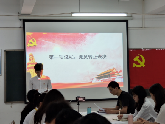 (通讯员:陈嘉茹)4月21日下午,为严格把控党员发展质量,更好地贯彻党的二十大精神,保持党员队伍的先进性和纯洁性,我院学生第一党支部在9栋202召开了预备党员转正大会,讨论关于吴桂强、陈锐鹏、柯玮坚、温若彤及林灿濠五名预备党员的转正申请。与会人员有我院学生第一党支部书记张威威、全体在校学生党员和预备党员,欧桃妍同志主持会议。