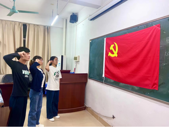 许丁元、潘馨怡、梁有威三名同学作为发展对象依次汇报自己过去一年考察期内思想、学习、工作等方面的表现,并表明自身坚定不移的入党意愿和全心全意为人民服务的坚定信念。随后入党培养人分别介绍发展对象平时的工作学习状态以及品质。与会党员先后就发展对象思想、学习、工作以及生活等方面的表现发表个人意见,对其一年来的表现予以充分的认可和肯定,并指出存在的不足,希望进一步改正。支部大会采取无记名投票方式进行表决。最后三名同志光荣地成为预备党员,并面对党旗进行庄严宣誓。