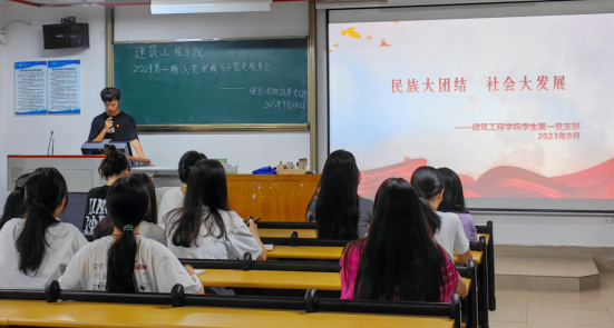 (通讯员:郑伊淳)为发扬民族团结精神,深化民族团结进步教育,进一步引导同志们从学习百年党史中汲取智慧和力量,我院学生第一党支部于9月24日晚在13栋教学楼组织开展以“民族大团结,社会大发展”为主题的党史学习教育。2022年第二期入党积极分子参加会议,柯玮坚同志主持会议。
