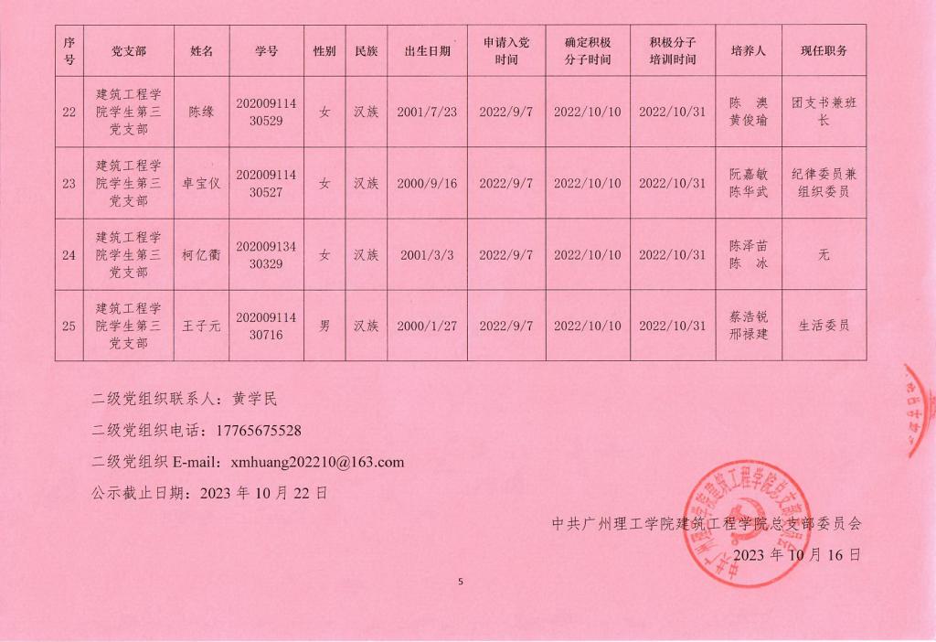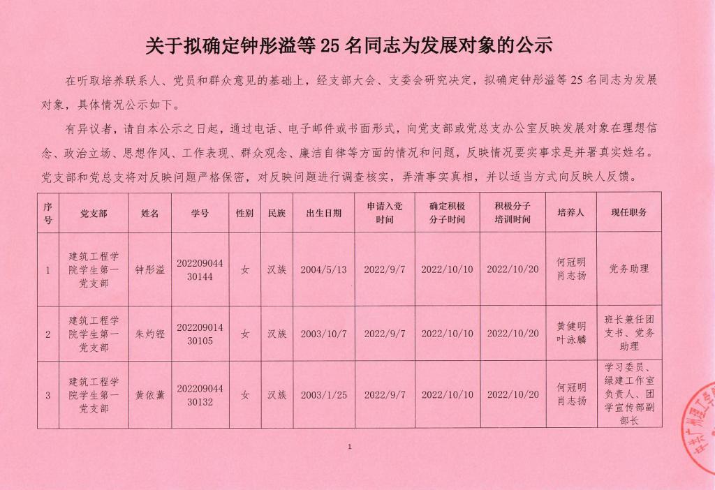 关于拟确定钟彤溢等25名同志为发展对象的公示