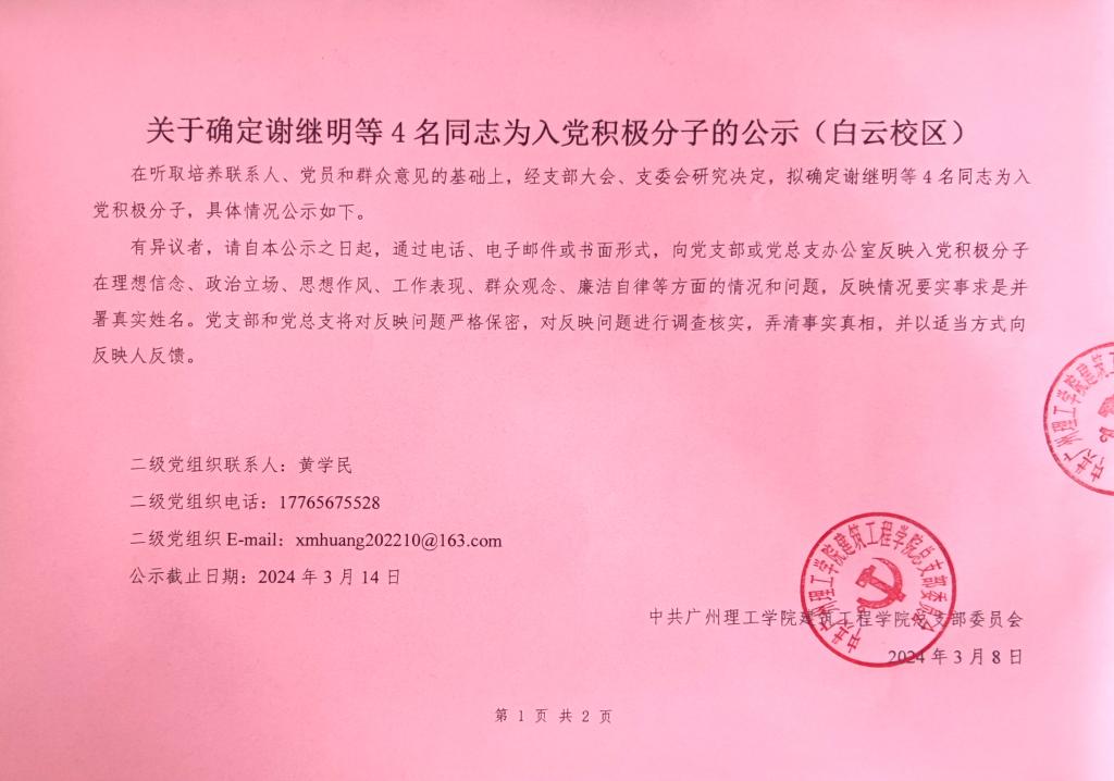 关于确定谢继明等4名同志为入党积极分子的公示(白云校区)