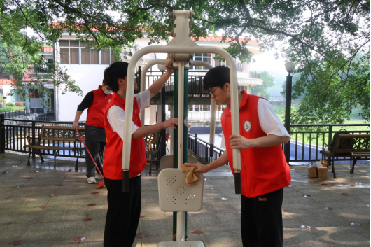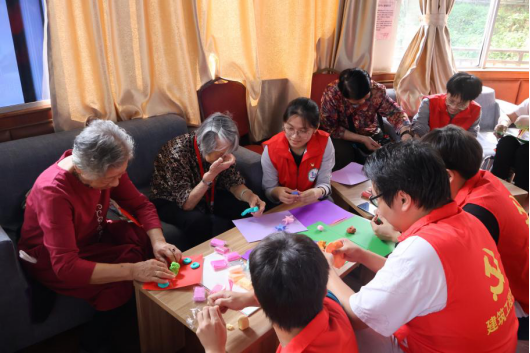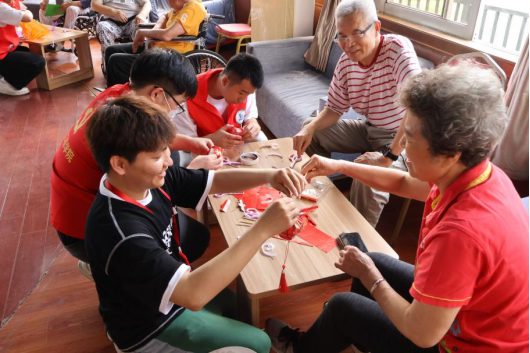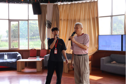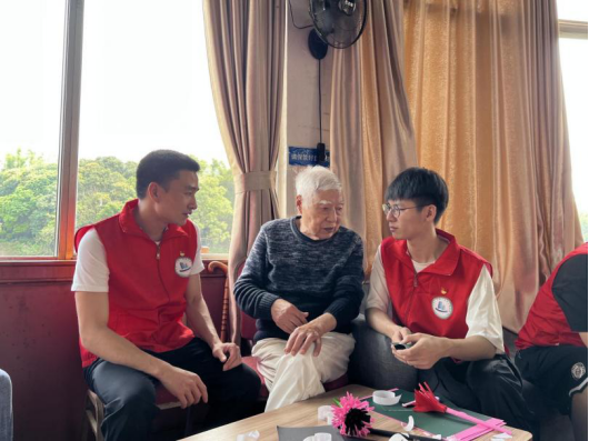活动伊始,志愿者们纷纷进入养老院积极开展卫生打扫,一丝不苟地为老人们营造出一个舒适的生活环境,用实际行动向老人们献上真挚的关怀。紧接着,志愿者们给老人们准备了才艺表演,并且与老人们一起合唱《我和我的祖国》、《没有共产党就没有新中国》、《打靶归来》等爱国歌曲。悠扬婉转的歌声激励着前辈们百折不挠向前进的壮丽征程,也激荡着当代中国强国复兴的澎湃动力。此外,志愿者们还自行分组,与老人们共同制作手工作品,并与他们促膝长谈,亲切交往,拉近了彼此之间的距离,为老人带来欢乐的同时自身也受益匪浅。他们当中有位老解放军战士向志愿者们讲述自己曾经光辉的军旅生涯,在一片赤城目光的注视下,他将那段感人肺腑的传奇岁月一一述说,令人动容。活动现场温馨惬意,志愿者们积极主动,活动进行高效而有序。