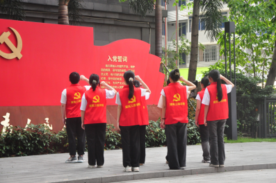 全体党员面向党旗重温入党誓词
