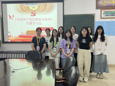 (通讯员:徐秀纷)为不断推动全面从严治党向纵深发展,提升全党的创造力、凝聚力、战斗力,以良好作风保证党纪学习教育走深走实,5月13日晚,我院学生第一党支部在9栋306组织召开《中国共产党纪律处分条例》(以下简称《条例》)专题学习会。全体在校党员和预备党员参会,李璐璐同志主持会议。