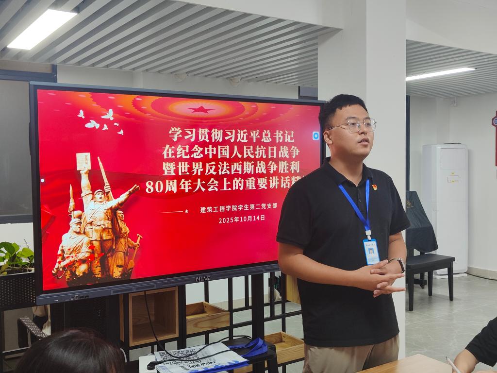 学生第二党支部开展“贯彻习近平总书记在纪念中国人民抗日战争暨世界反法西斯战争胜利80周年大会上的重要讲话精神” 主题党课学习会