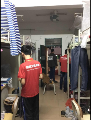 检查组对宿舍插座使用、宿舍阳台堆积可燃杂物、违规电器使用等可能存在的安全隐患进行了仔细排查,并对大功率电器、养宠物的情况进行重点检查。在检查的同时,检查组要求学生增强安全防范意识,注意防火防盗,关好宿舍门窗,禁止私拉乱接电线,禁止使用大功率电器,自觉维护宿舍安全保持室内清洁,尤其注意宿舍内不得使用明火和违章用电等,共同维护学院的安全稳定。