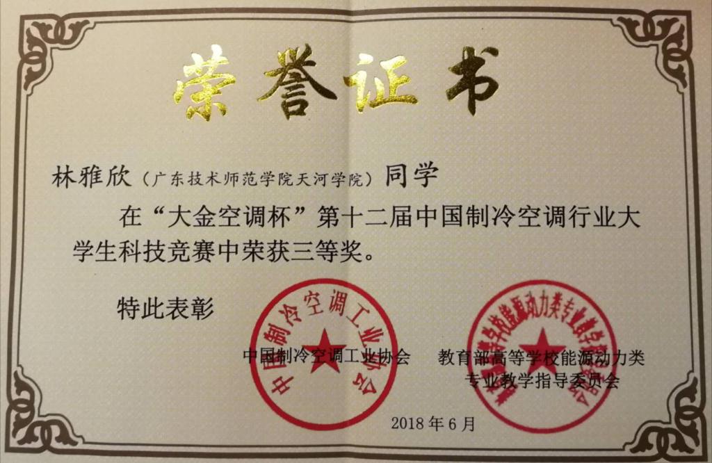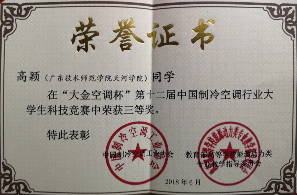 6月26日—6月27日,williamhill中国官网建环专业学生高颖、林雅欣、吴冰冰同学组成“对对队”团队,代表我校参加了“大金空调杯”第十二届中国制冷空调行业大学生科技竞赛,经过约克工厂实操+创新作品答辩+专业知识竞答三个竞争激烈的比赛环节,最后获得科技竞赛三等奖。