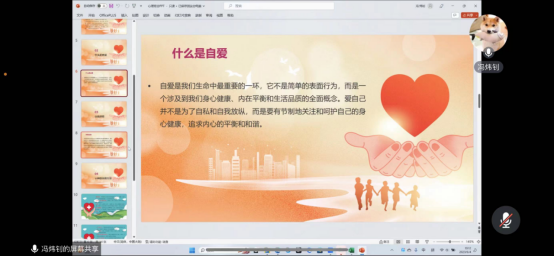 (通讯员:邓可恩)6月4日,我院组织各班以线上的形式召开了525心理健康主题班会,各班心理委员主持班会,每年的5月25日的前身为“大学生心理健康日”,2004年团中央学校部、全国学联共同决定将5月25日定为全国大、中学生(包括中职学生)心理健康日,“5·25”的谐音即为“我爱我”,提醒大、中学生“珍惜生命,关爱自己”。该节日意在关注大中学生的心理健康,培养健全的品质和人格。