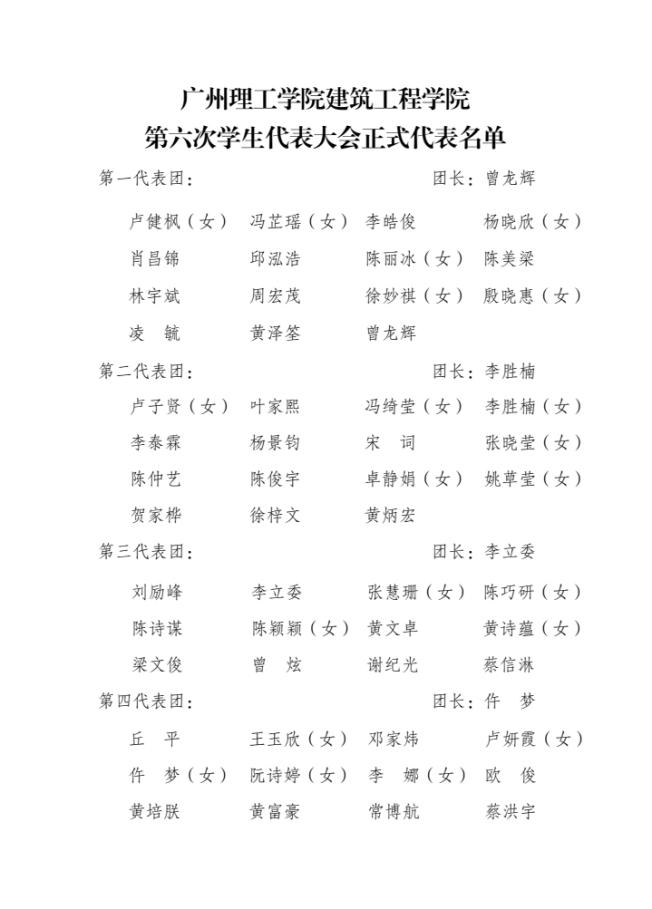 williamhill中国官网第六次学生代表大会正式代表公示