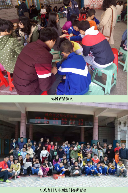 为了增强小朋友们的自信心与安全感,志愿者们除了带上慰问的小礼品,还精心设计了“义教活动”、“你摸我猜”、“声音竞猜”等活动,让他们真正感受到爱和欢乐,而他们也为志愿者演唱了精心准备的歌曲,在这美妙的歌曲声中志愿者结束了此行。