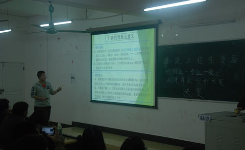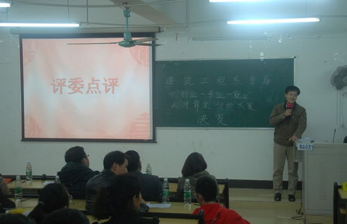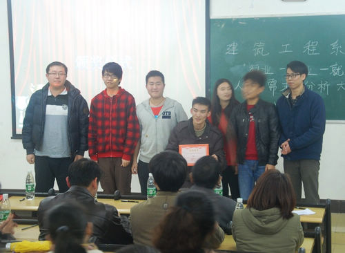 2014年3月10日19:30,建筑工程系首届“行业-专业-就业人才需求分析”大赛在7栋218教室准时开始。出席本次大赛的嘉宾评委有建筑工程系党总支书记李华东、副书记杨振宏、常务副主任伏焕昌、副主任侯庆华、办公室主任杨惠、团总支书记潘丹丹、天河学院招生与就业指导办公室张毅民老师和高飞老师,以及参赛团队的指导老师等。比赛开始,主持人首先介绍了比赛规则及各专业参赛团队。接下来,各个参赛团队对作品进行了精彩的展示。最后,土木专业“Building Dream”团队通过充足的材料准备、精彩的展示及优秀的团队精神获得一等奖,二等奖及三等奖分别由造价122班和工管风云队获得,而智瑞-环设团队就获得优秀团队奖 。本次比赛的一、二等奖获得者将代表建筑工程系参加学院决赛。最后,伏焕昌主任对各队选手进行了点评。他对选手们的精彩表现表示了肯定,并强调培养学生职业发展意识和社会调查研究能力的重要性。大赛最后在热烈的掌声中圆满结束。