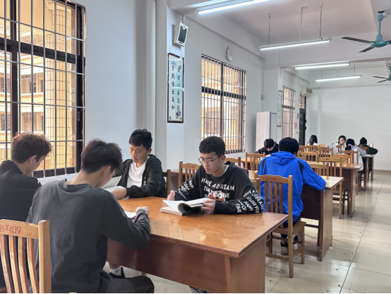 春风拂槛,手捧书卷,斜晖中的书影微微摇曳,同学们积极响应号召,带着清晨的朝阳走进图书馆,入目的是陈列在图书馆中央的法律宣传海报。进入图书馆室内,同学们或坐在舒适的书桌前,或倚靠在书柜的一角,不由得开始穿梭时空的幻象,汲取书籍的每一抹幽香,泛黄的古书页篆刻了无尽的才华与智慧,倾听不同的故事,与相似的灵魂交汇,在文字的汪洋中来一场惬意徜徉。临近响午,同学们将未读完的、喜爱的书籍带到借书处登记,借阅书籍。