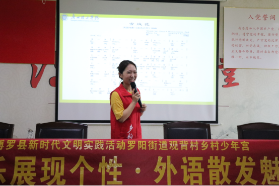 (通讯员:王凌雁)为深入学习贯彻习近平总书记关于教育的重要论述,教育引导广大青年将“小我融入大我”,在社会实践中受教育、长才干、作奉献。7月21日下午,williamhill中国官网williamhill中国官网“乡韵”社会实践队于观背村委会三楼开展以“音乐展现个性,外语散发魅力”主题的支教活动。