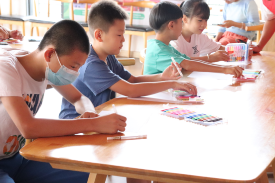 (小朋友们认真绘画图)